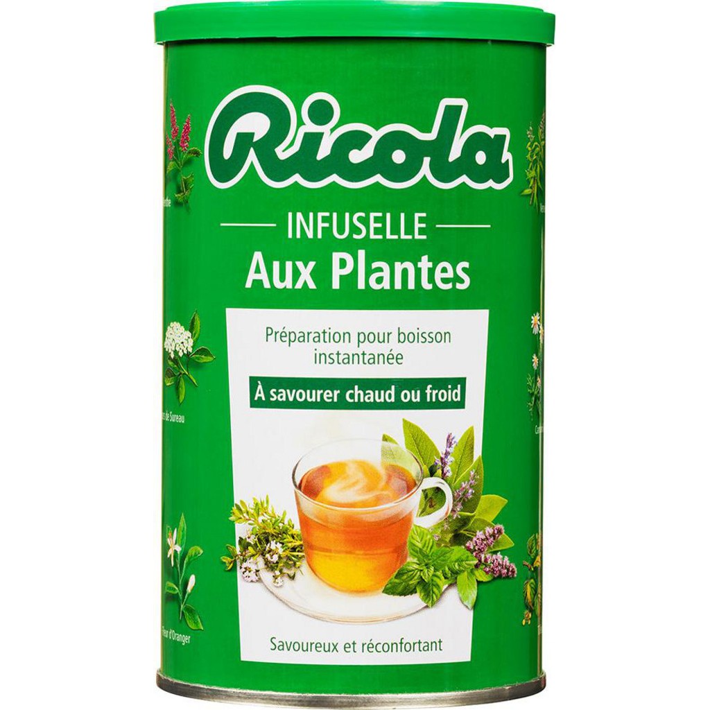 Ricola Aux Plantes associe les saveurs intenses de plantes savamment choisies, dont la menthe, la verveine et le tilleul, pour un pur moment de réconfort et de plaisir. Lot économique de 6 boîtes. Sucre, dextrose, extrait (2,5%) de plantes : menthe, camomille, verveine, fleur d oranger, tilleul ; sucre caramélisé, extrait (0,3%) du mélange de 13 plantes Ricola : plantain, guimauve, menthe, thym, sauge, alchémille, achillée, pimprenelle, mauve, fleurs de sureau, primevère, véronique et marrube ; arômes naturels de menthes.