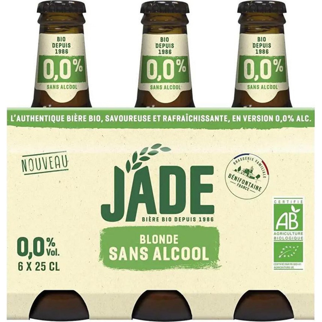Bières de la marque NC [pack de 6]. Bière Blonde Jade sans alcool Bio 6x25cl. EAN pack de 6: 3272460123897.