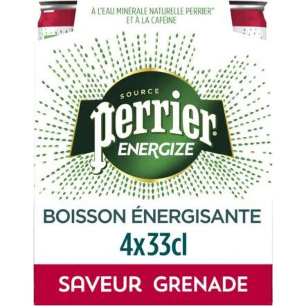 Boissons énergisantes de la marque PERRIER [pack de 4]. PERRIER ENERGIZE GRENADE 33CL. EAN produit unitaire: 7613287168405. EAN pack de 4: 8445290765284.