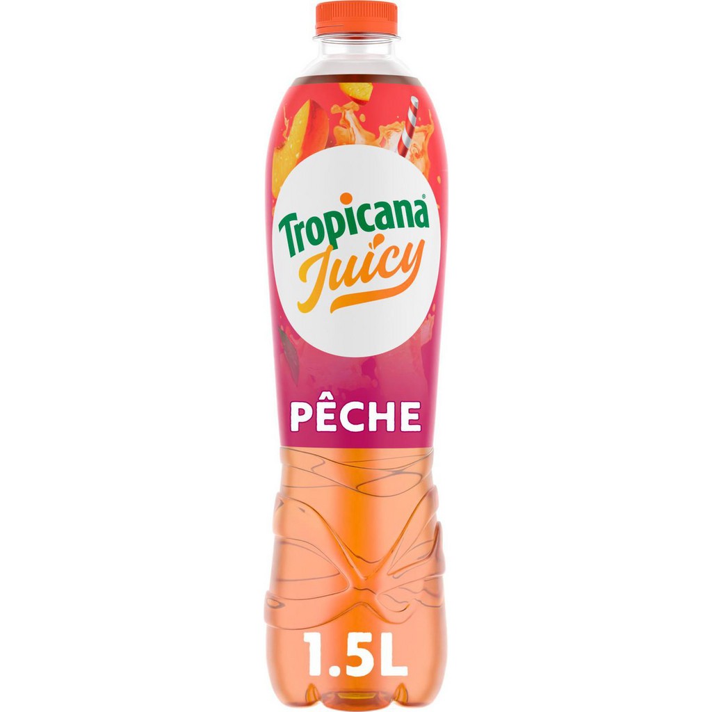 Boissons fruitées de la marque TROPICANA. TROPICANA Boisson Juicy Pêche 1,5L. EAN 1210002001786.