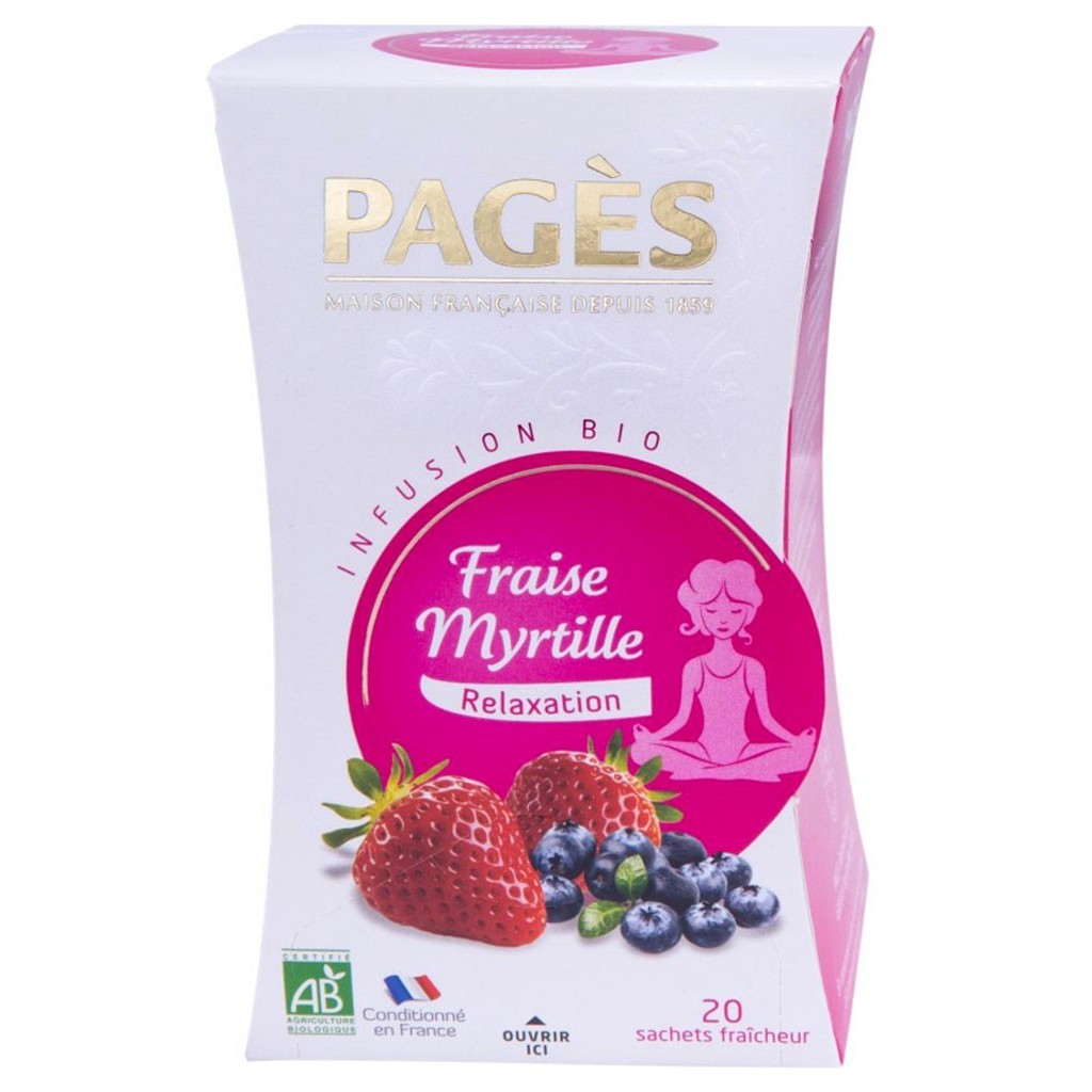 Aujourdhui, Pagès grâce à son savoir-faire des plantes de plus de 150 ans, la maison française créée une déclinaison originale de sa recette mythique de verveine, en lassociation au plaisir fruité de la myrtille. Issue des meilleurs jardins, sélectionnée avec soin, préservée de toute pollution, elle se distingue particulièrement par son équilibre parfait de plantes et de fruits rouges. Linfusion Bio Verveine-Myrtille de Pagès est exceptionnelle. Lot économique de 3 boîtes. 24% Verveine bio, 15% Mûre bio, 12% Aromes naturels , 10% Framboise bio, 10% Hibiscus bio, 10% Maté bio, 7% Betterave rouge bio, 6% Réglisse bio, 5% Sureau fruit bio, 1% Myrtille fruit bio.