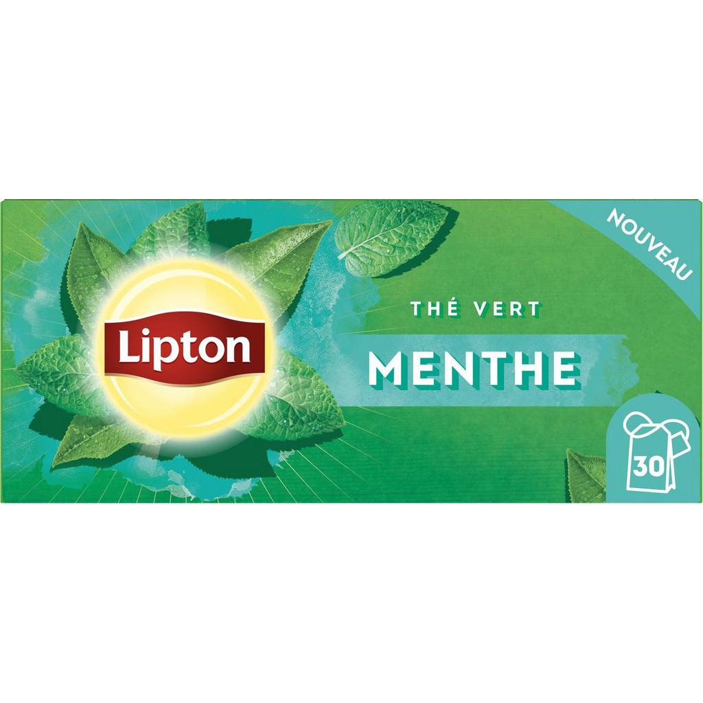 Thés de la marque LIPTON. LIPTON Thé vert menthe (la boite de 30 sachets). EAN 8720608026548.