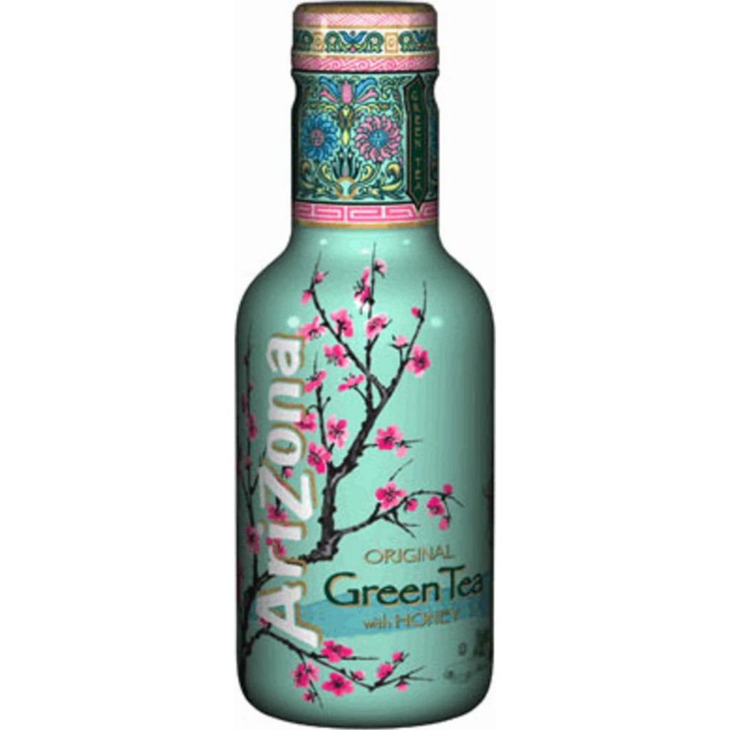 Boisson glacée au thé vert au ginseng et au miel. Les boissons Arizona sont réalisées à partir d'ingrédients 100% naturels, sans saveur artificielle, colorant ou conservateur. Produit à base de thé, infusé avec de vraies feuilles. Tous les produits sont préparés au moyen du procédé d'embouteillage à chaud, supprimant ainsi les besoins en conservateurs. Profitez des bienfaits du thé dans une boisson saine et rafraîchissante!. Eau, sucre, miel (0.18%), extrait de thé vert (0.14%), arôme naturel, antioxydant: acide ascorbique, acidifiant: acide citrique, extrait de ginseng.